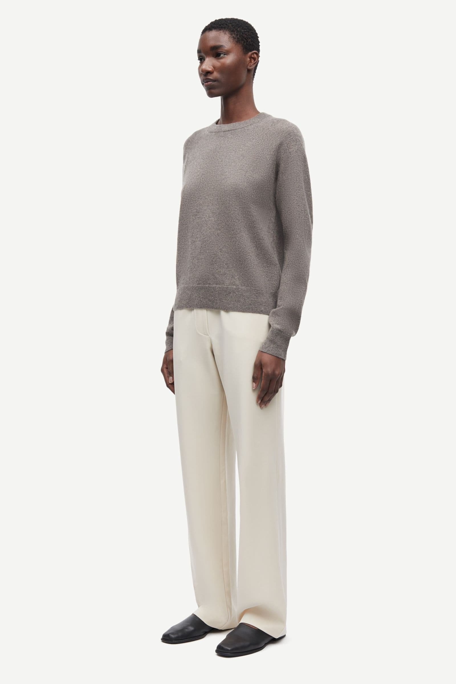 Sweater med løs pasform og raglanærmer Ribstrikdetaljer i den runde hals, manchetterne og forneden. Strikket i fin kvalitet. Hovedmaterialet er fremstillet af 100 % kashmir. Dette produkt er GCS-certificeret. GCS understøtter den ansvarlige produktion af kashmiruld.