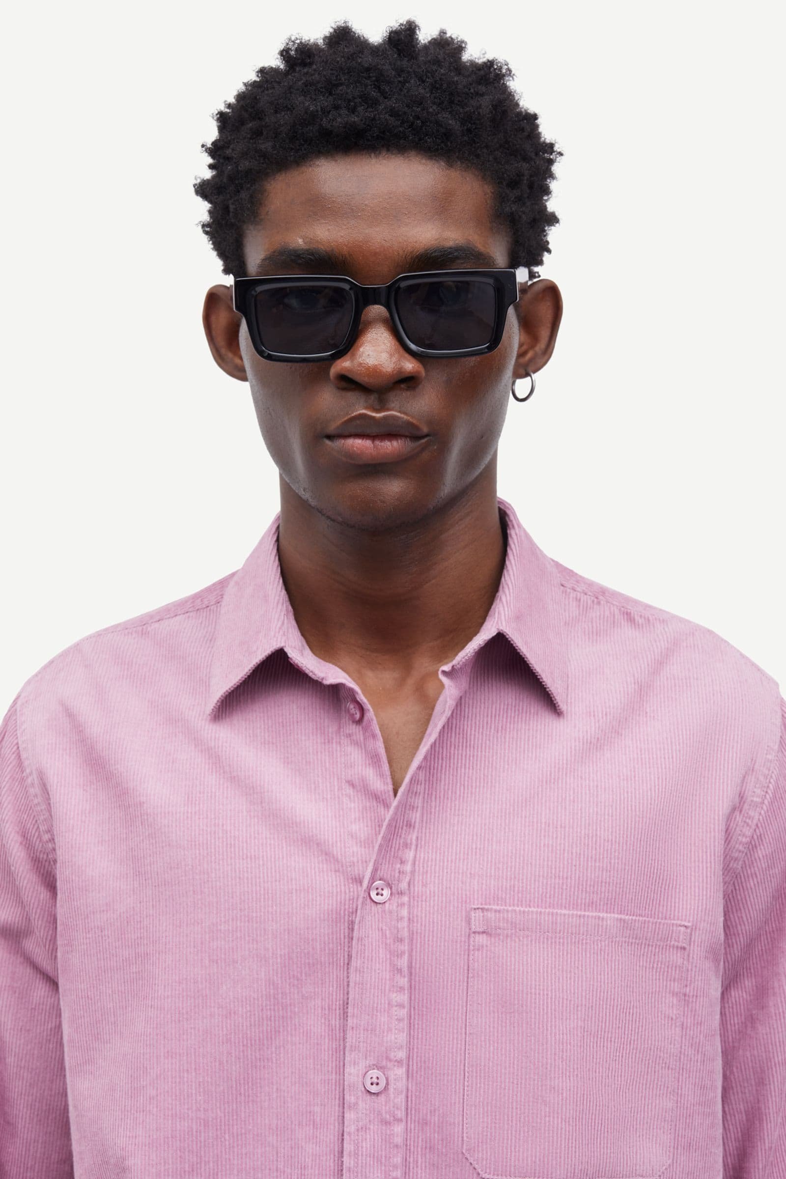 Rektangulære unisex solbriller med tonede glas. Bredt stel fremstillet af 100 % Acetate Renew og ø-logo ved stængerne. Etui og klud med Samsøe Samsøe-logo.