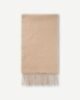 Tørklæde med frynser i kanterne. Broderet Samsøe Samsøe-logo i siden. Hovedmaterialet er fremstillet i en blanding af genanvendt uld og genanvendt kashmir. Fremstillet i Italien.
