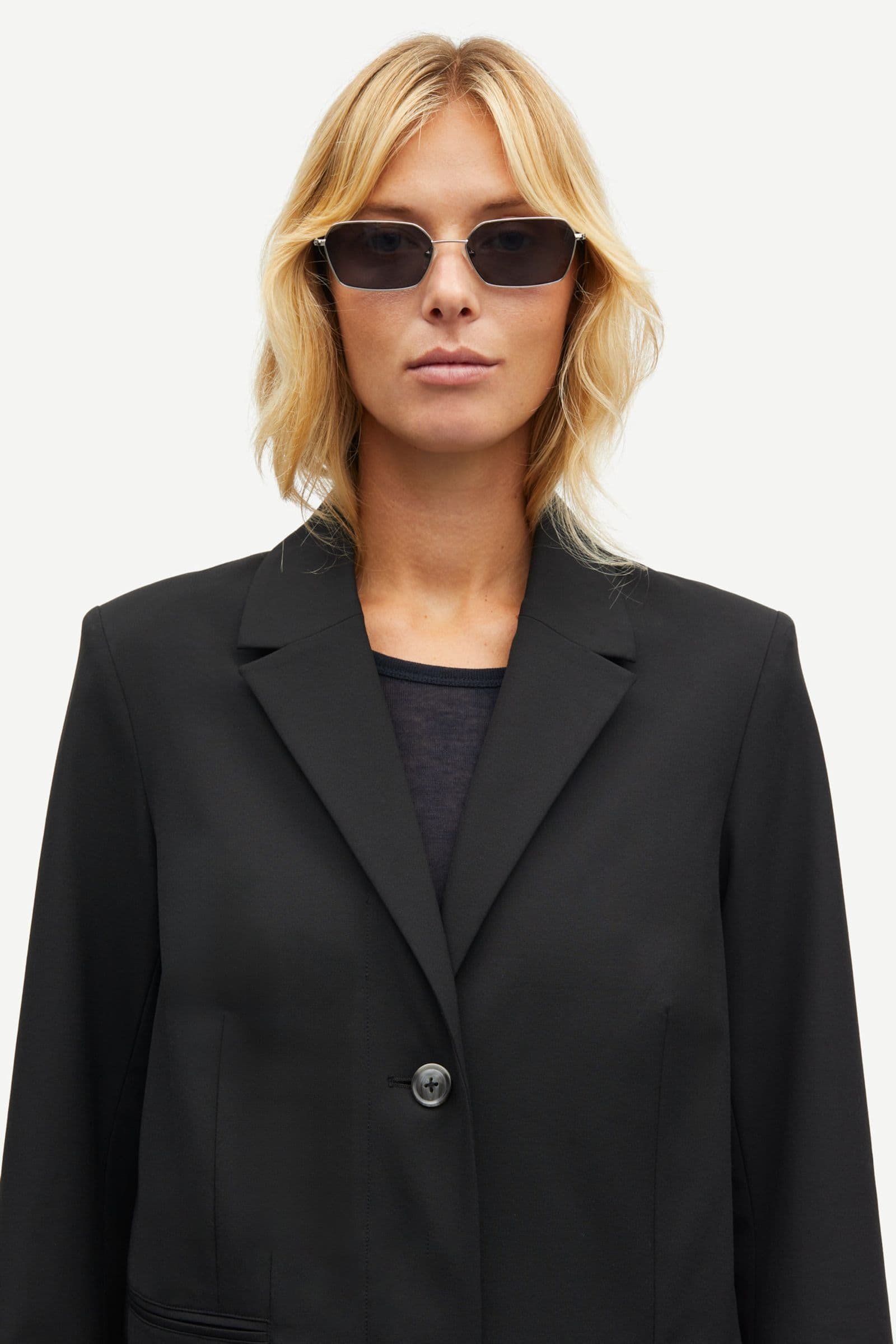 Rektangulære unisex solbriller med tonede glas. Smalt stel lavet af metal. Etui og klud med Samsøe Samsøe-logo.